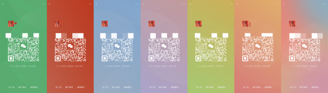 个人二维码的样式更换,支持包括白色在内的八种背景色,既有纯色样式,也有渐变样式。