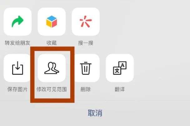 作者还发现,新版微信正在测试一项关于朋友圈的新功能。更新到最新版微信的小伙伴,可以点击自己的任意一条朋友圈,并在相关的弹出菜单中找到“修改可见范围”的选项,随后即可自行修改可见范围的权限,包括公开、私密、部分可见、不给谁看等。