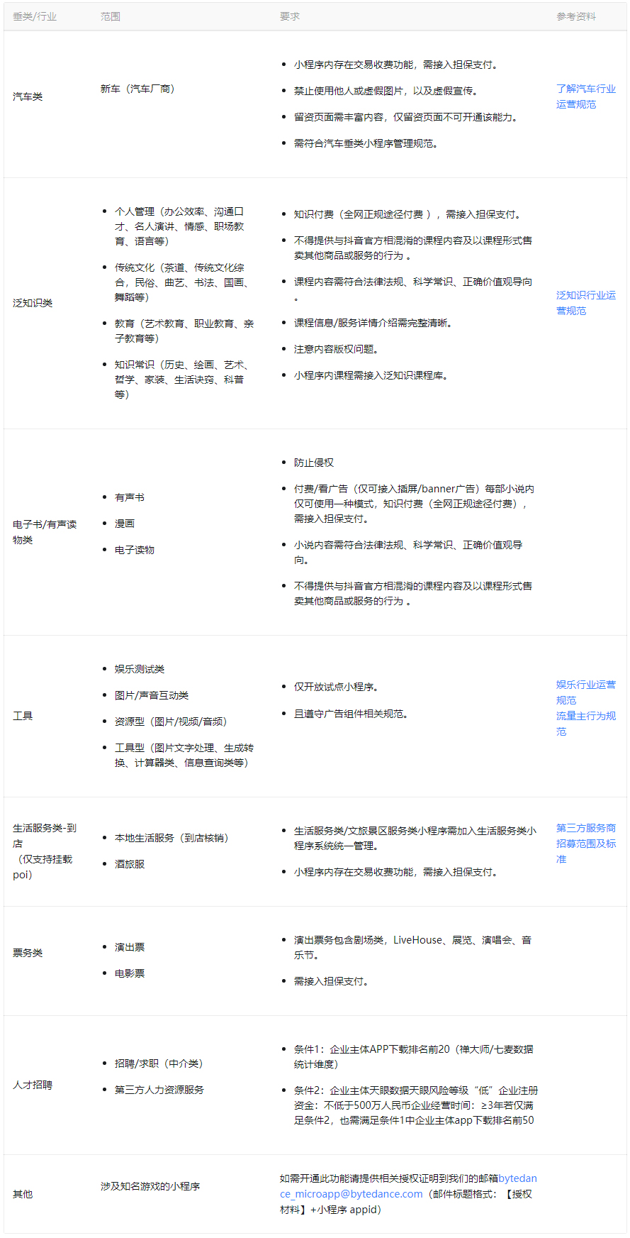 4.3 部分类型小程序不予开通(详见三、暂不开通该能力类型)。