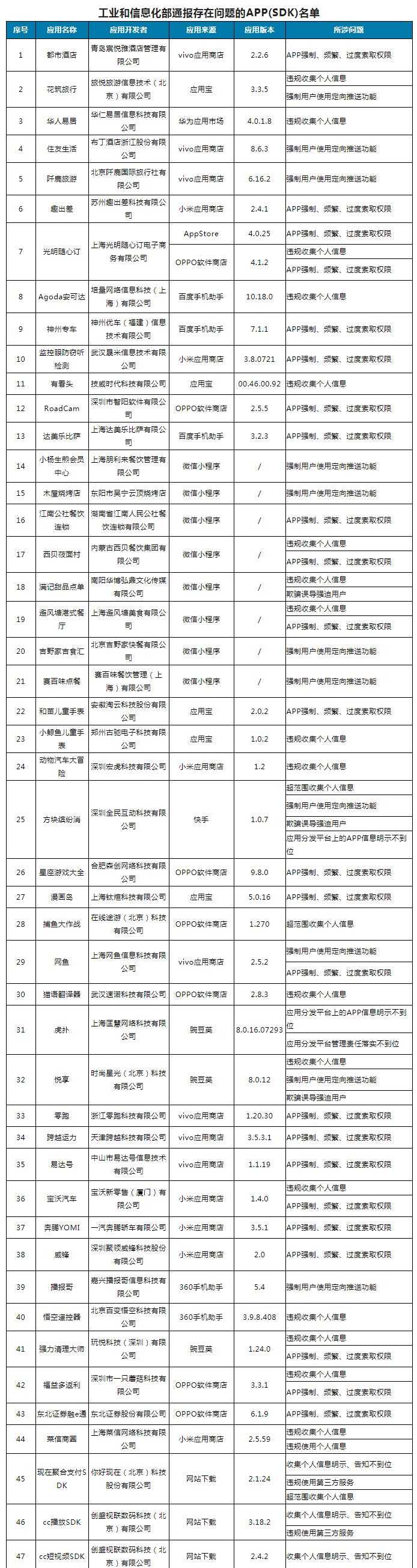 今日,工信部通报了47款侵害用户权益APP和SDK。