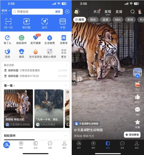 去年7月,支付宝宣布升级生活号并在首页中心位上线生活频道,商家、达人、机构发布的图文、短视频、直播等内容以信息流的形式呈现。很快,作为支付宝私域基建之一,生活号又陆续接通app内多个公域阵地。