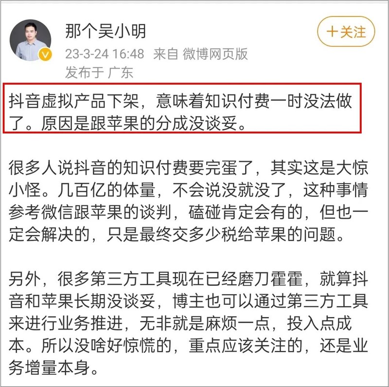 对于调整的具体原因,大家不得而知,但这一消息对于做知识付费的达人和主播,甚至是抖音整个知识付费赛道来说,无疑是惊天巨浪。