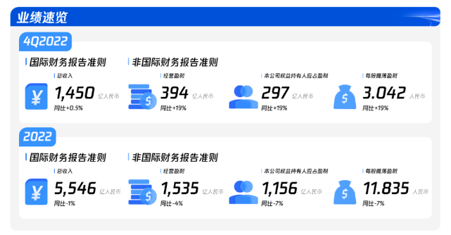 3月22日,腾讯控股发布2022年Q4及全年财报。从全年数据来看,腾讯表现并不佳,2022年的总收入为5546亿元,同比下降1%;非国际财务报告准则下,净利润为1156亿元,同比下降了7%。