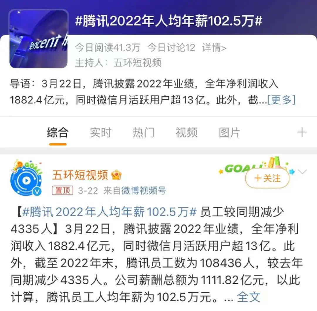 简单粗暴地算一下,按照财报披露的净利润,腾讯在过去一年平均每天能净赚超过3亿元,员工数量虽比上一年减少,但人均年薪达到了102.5万元,比去年还上涨了。