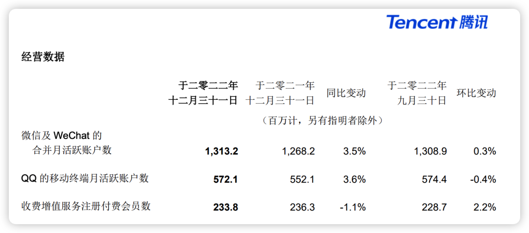 从财报看,微信仍保持稳定增长,微信及WeChat的合并月活用户数达到13.13亿,相比上一季度增加了400万用户,同比增加了3.5%。
