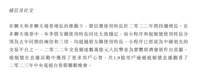 最新财报中,腾讯共提及“视频号”11次,存在感颇强。抛开涉及业务成本部分的描述外,主要涉及三个点:用户数据增长,直播收入增加,以及广告需求强劲。