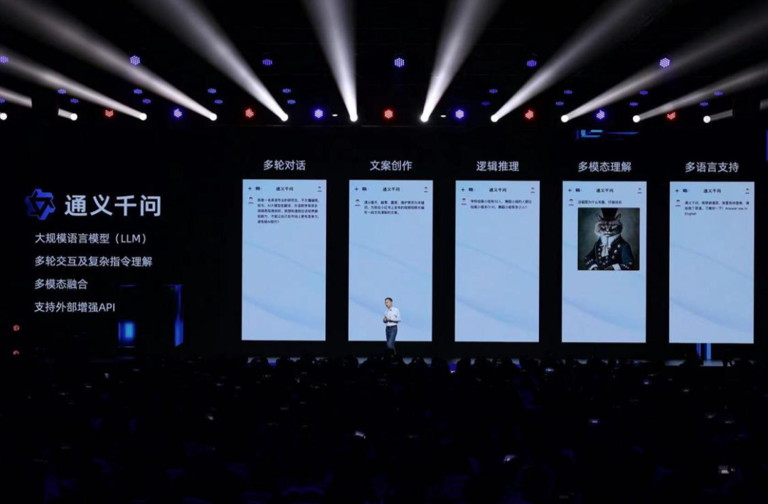 据阿里云智能首席技术官周靖人介绍,通义千问目前能够实现文案创作、对话聊天、知识问答、逻辑推理、代码编写、文本摘要以及图像视频理解服务,并通过API插件实现AI能力的泛化。