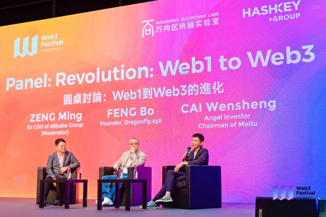 在上周由万向区块链实验室、HashKey Group联合主办,W3ME承办的2023香港Web3嘉年华上,天使投资人&美图董事长蔡文胜、Dragonfly.xyz创始人冯波、阿里巴巴前首席战略官曾鸣三位嘉宾的圆桌讨论,或能为我们带来系统的思考。以下为对话全文: