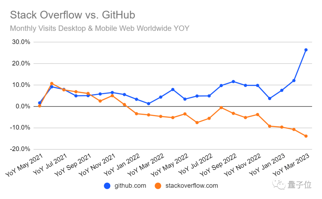 ChatGPT的一大生产力功能是生成代码,之前最受欢迎的编程问答社区StackOverflow地位开始下降。