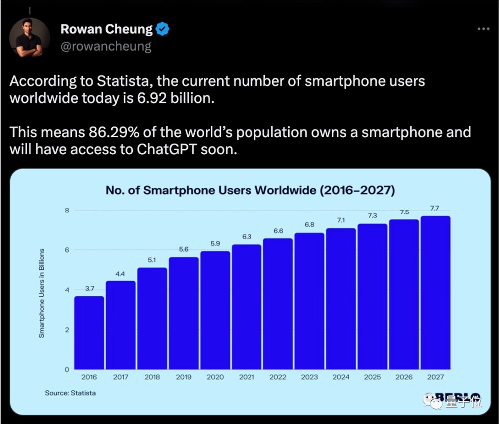想象一下,全球有着几十亿智能手机用户,占到人口总数将近90%。而很快大家都能在手机上体验ChatGPT了。