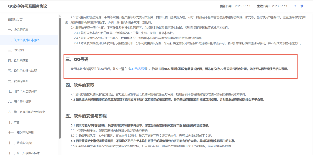使用本软件您需要注册 QQ 号码,并应当遵守《QQ 号码规则》。若您注册的 QQ 号码长期没有登录或使用,腾讯有权将 QQ 号码进行回收处理,您将无法再继续使用相应号码。